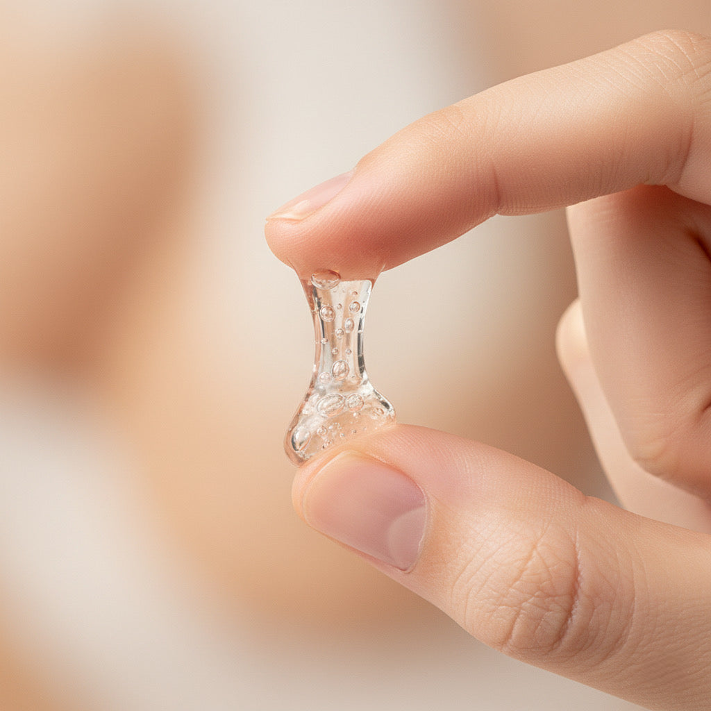 Leve e sedoso. Ele desliza perfeito, mas sem aquele drama de grude ou cola de produto ruim. Não esfarela e não faz bagunça. Juro, a textura imita a lubrificação natural do corpo.