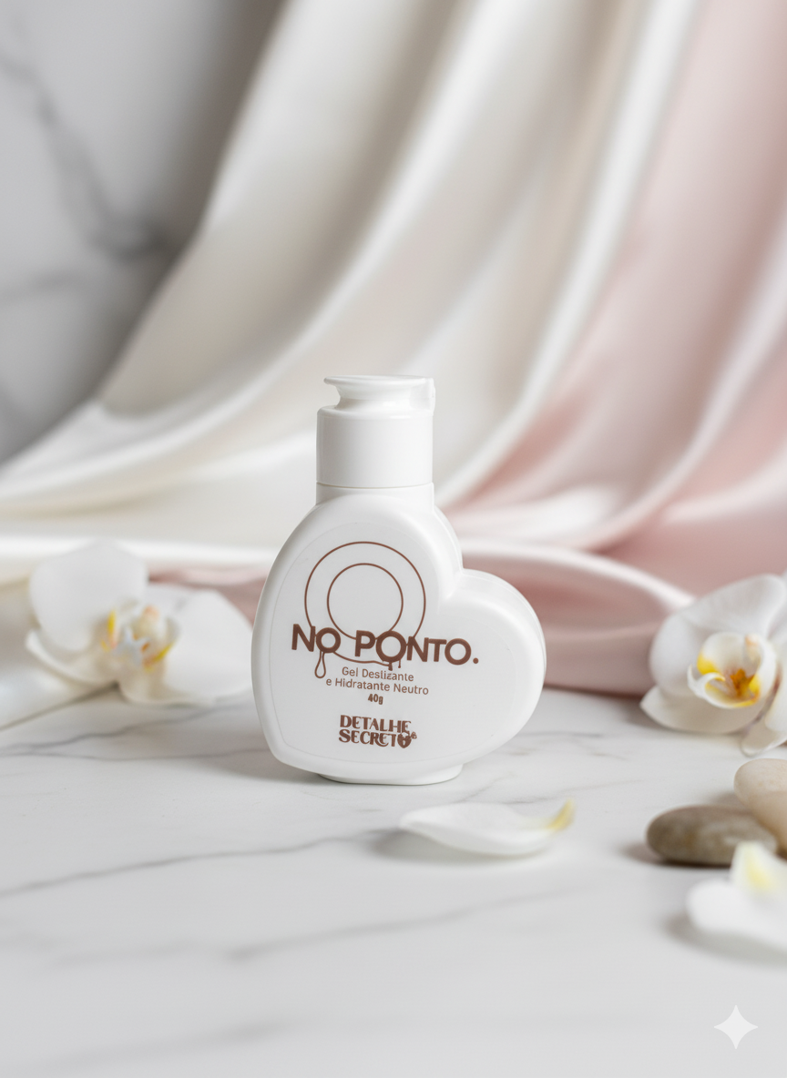 O No Ponto é um gel deslizante e hidratante neutro. Ele foi desenvolvido para lubrificar, deslizar e aumentar o conforto e a leveza em momentos de intimidade ou autocuidado.