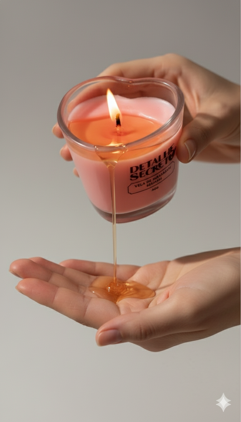 Criada para quem busca intensificar a conexão, surpreender e se entregar, nossa vela é o segredo para transformar massagens em rituais de sedução, hidratação em desejo e o seu momento a dois em uma experiência inesquecível. E o melhor: não queima sua pele!